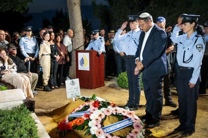 Minister van Veiligheid Ben-Gvir bij de begrafenis van een politieagent.