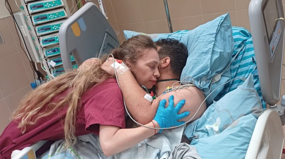 De soldaat werd met ernstige verwondingen aan zijn ledematen naar de spoedeisende hulp van het Soroka-ziekenhuis in Beersheva gebracht. Na een gecompliceerde operatie werd hij overgebracht naar de intensive care en later naar de orthopedische afdeling B. Zijn familie, die in het noorden van Israël woont, kon niet op tijd komen, maar verpleegster Hila, die voor hem zorgde, nam hem in haar armen.