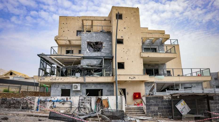 Schade na de inslag van een raket afgevuurd vanuit Libanon in de noordelijke stad Kiryat Shmona, 27 maart 2024. Foto: David Cohen / Flash90