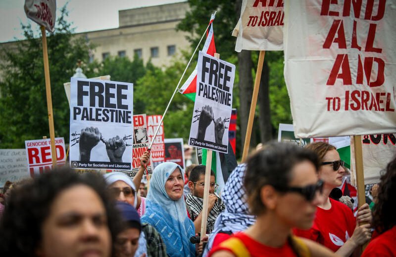 Pro-Palestijnse demonstranten op Capitol Hill in Washington, DC. Foto: Arie Leib Abrams/Flash90