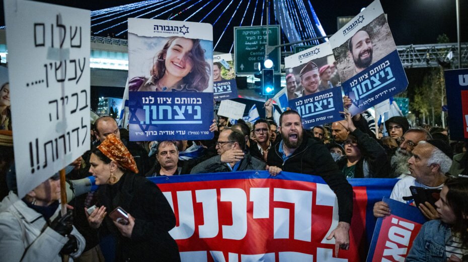 Israëli's protesteren in Jeruzalem tegen de huidige gijzeldeal met Hamas en noemen deze een capitulatie. Foto door Chaim Goldberg/Flash90.