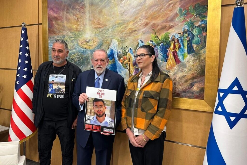Talik en Itzik Gvili hadden op 28 november 2025 een ontmoeting met de Amerikaanse ambassadeur in Israël, Mike Huckabee, in de Amerikaanse ambassade in Jeruzalem. De zoon van de Gvili’s, Ran, werd op 7 oktober 2023 door terroristen gevangengenomen en is de laatste Israëlische gijzelaar die in Gaza wordt vastgehouden. Foto: Forum voor gijzelaars en vermiste families.