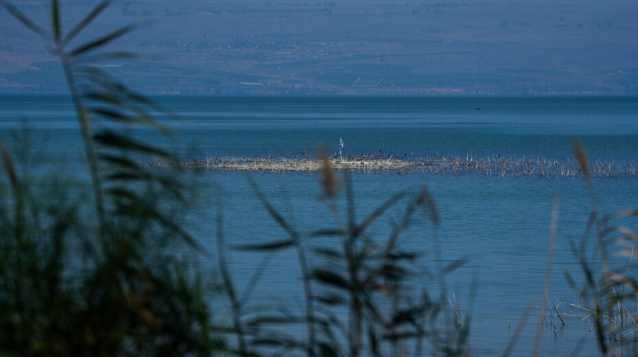 Door verdamping van het water is het kleine eilandje tegenover de kibboets Ma’agan in het zuidoosten van het Kinneret nu weer boven het wateroppervlak te zien.