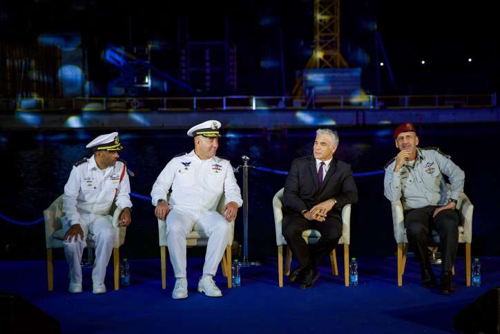Oppositieleider Lapid voelt zich op zijn gemak tussen de generaals.