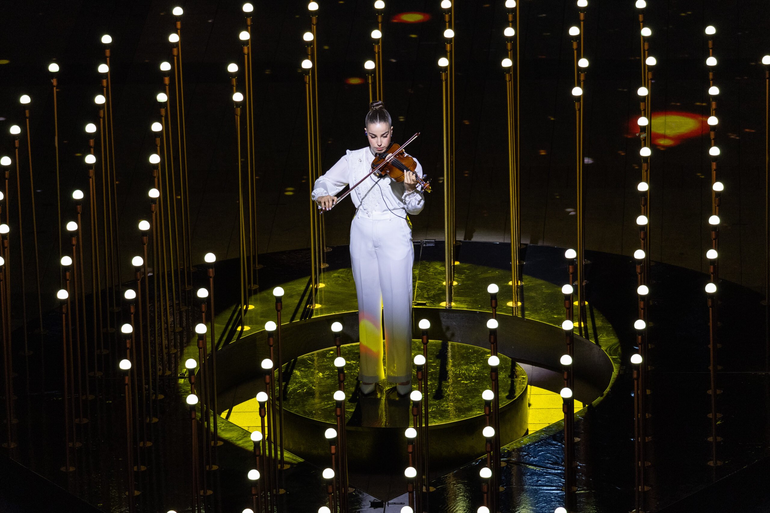 Een ander hoogtepunt van de ceremonie was het optreden van Agam Berger, een voormalige gijzelaar die 482 dagen in handen was van Hamas. Ze speelde viool, begeleid door zanger Dudu Fisher, die een gebed reciteerde voor de terugkeer van de gijzelaars die nog steeds in Gaza worden vastgehouden.