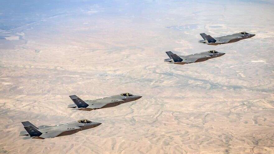 Israëlische en Amerikaanse F-35 straaljagers tijdens een gezamenlijke trainingsoefening tegen Iran. Foto: IDF