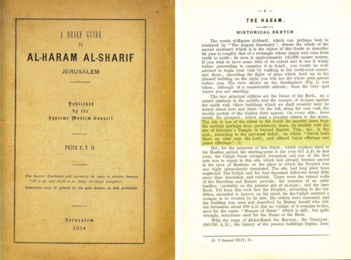 In een brochure voor toeristen, uitgegeven door de Hoge Moslim Raad in 1924, staat onomwonden: