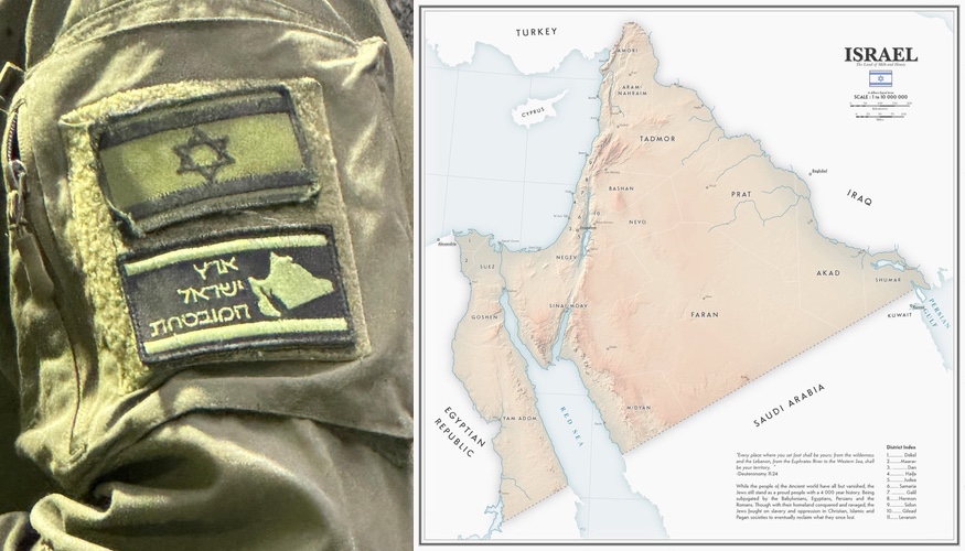 Rond dezelfde tijd ontstond er in de Arabische media ophef over enkele foto’s op sociale media waarop Israëlische soldaten in Gaza en Zuid-Libanon te zien waren met speciaal vervaardigde patches waarop een sterk uitgebreid Israël en de woorden “Promised Land of Israel” (Beloofde Land Israël) te zien waren.