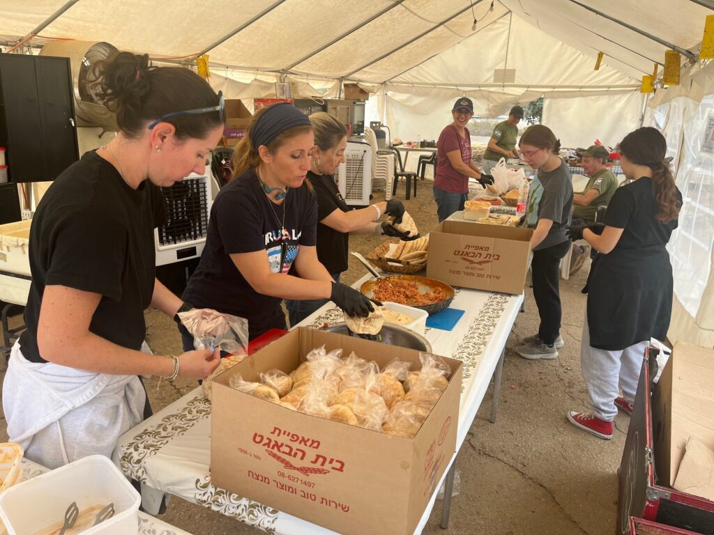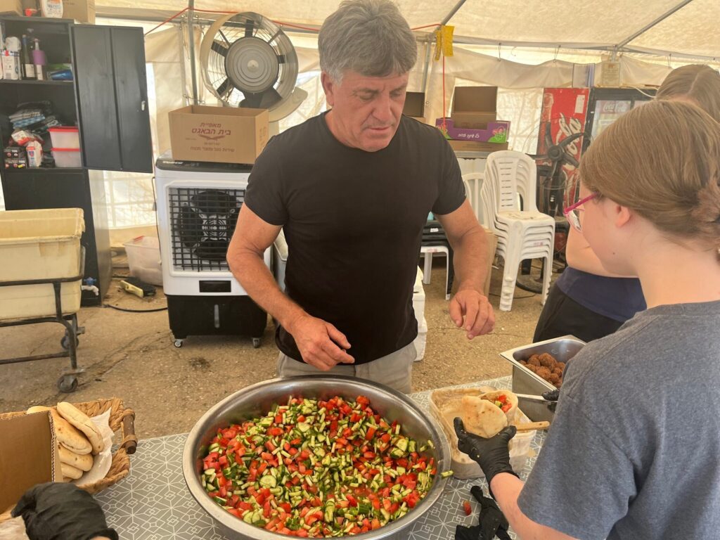 Een half uur eerder waren Ohaion en een groep van tien andere vrijwilligers uit Israël en het buitenland druk bezig met koken in zijn snackwagen en met het bereiden van meer dan 500 verse broodjes in een tent net buiten de kibboets Be’eri, die aan soldaten in de regio zouden worden uitgedeeld.
