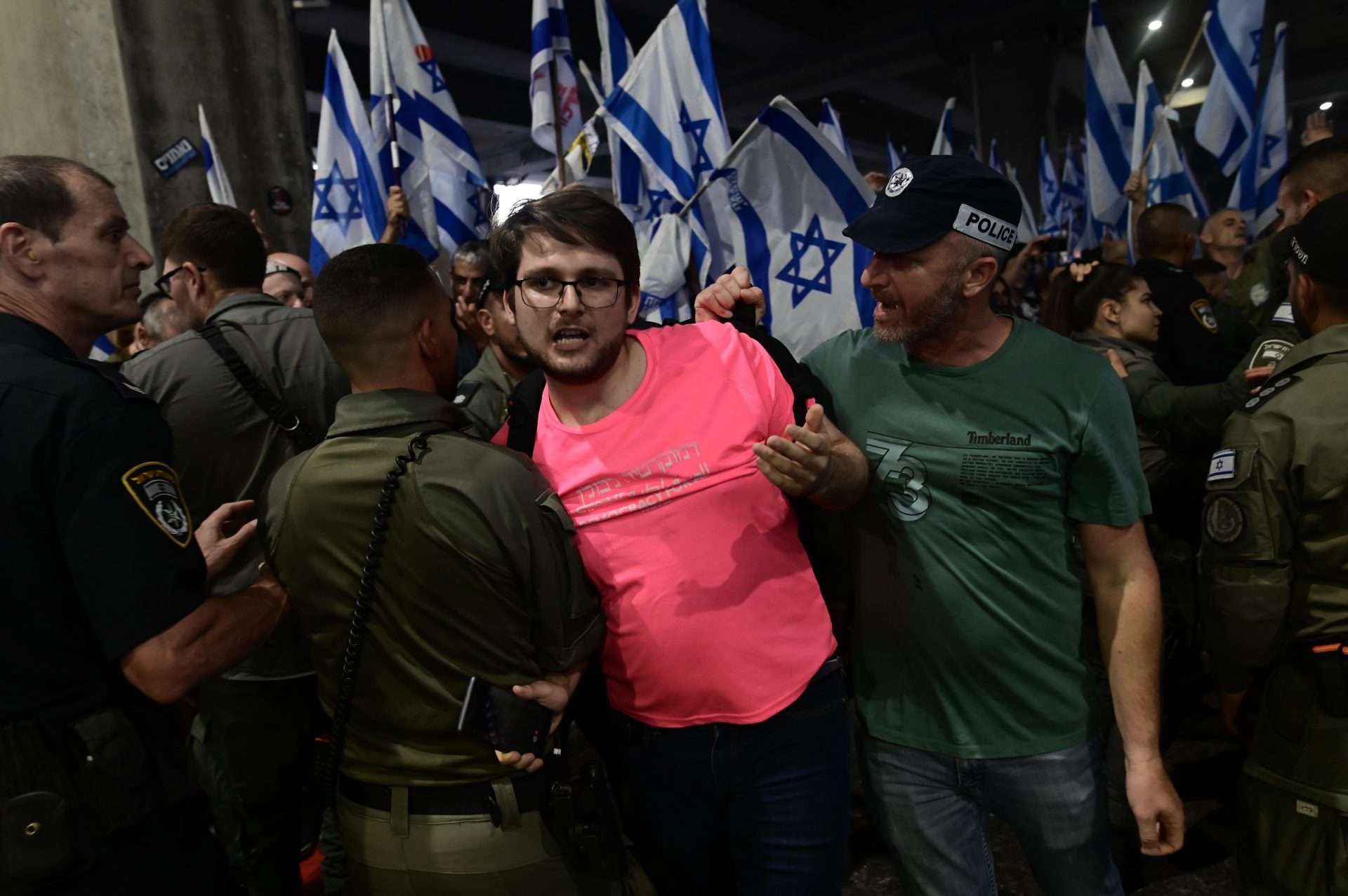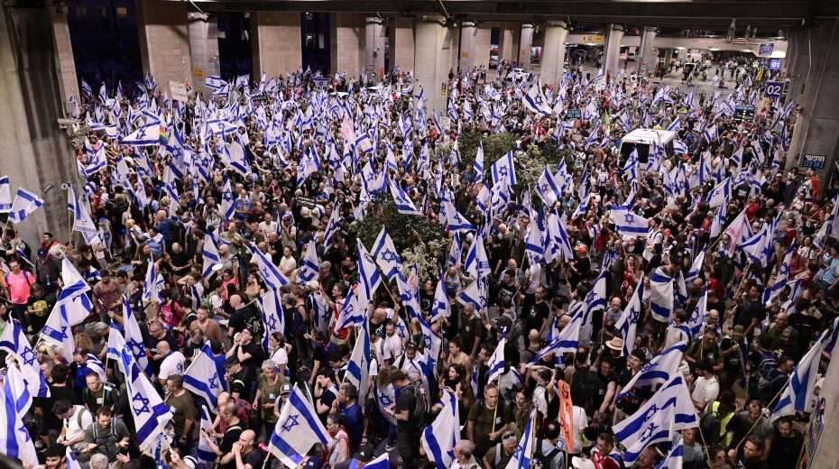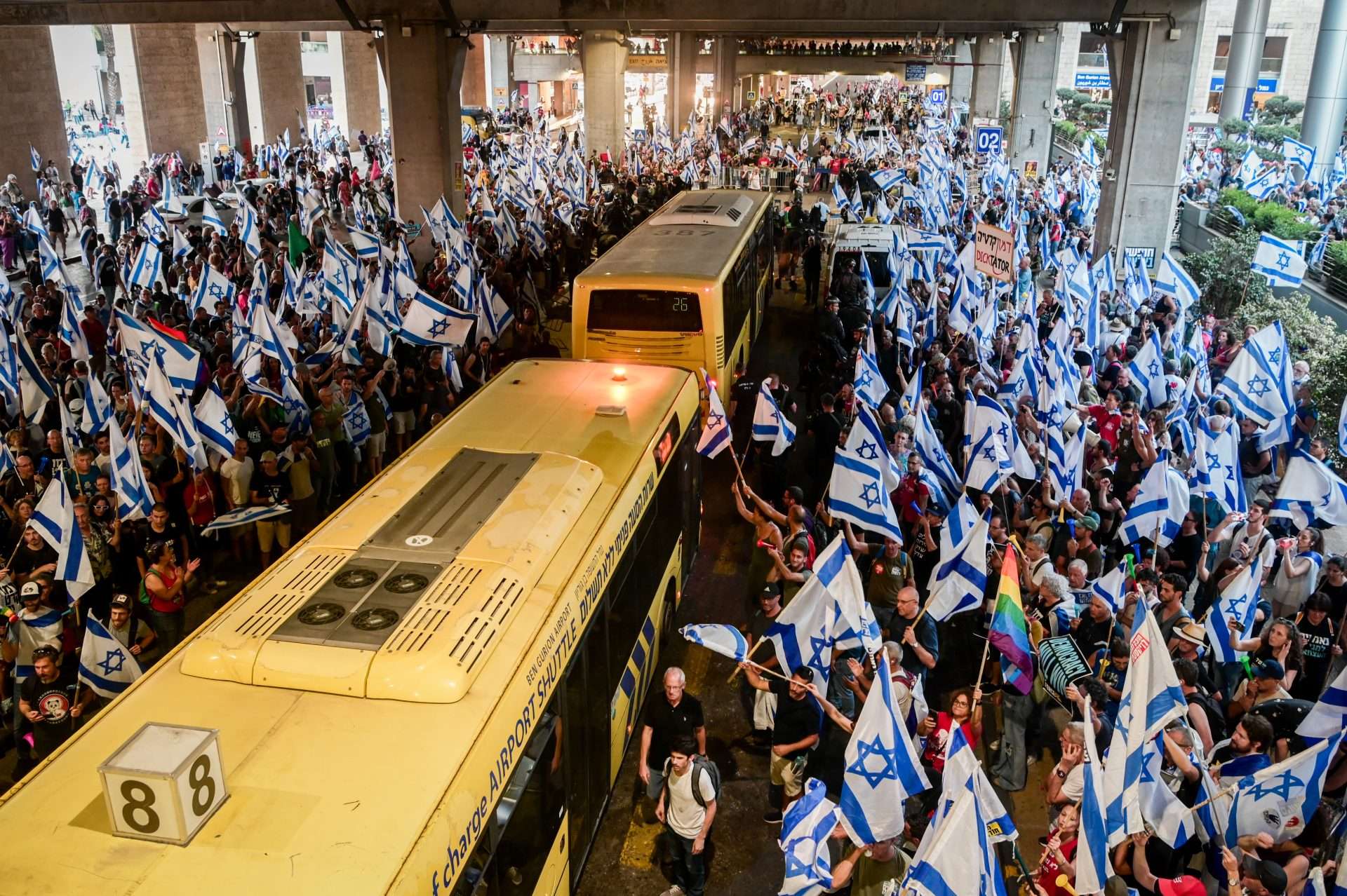 Massale protesten vonden maandag plaats op Ben Gurion Airport tegen de geplande hervorming van het gerechtelijk apparaat door de Israëlische regering. Duizenden demonstranten verzamelden zich, blokkeerden de hoofdstraat van de luchthaven en demonstreerden in de aankomsthal van Terminal 3. Velen droegen de Israëlische vlag en bliezen op toeters, sommigen hielden borden omhoog waarop de regering een “criminele bende” werd genoemd en de protesten werden afgeschilderd als “het redden van de democratie”.