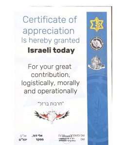 Sinds het begin van de oorlog hebben we dankzij jullie hulp al 600 veldmatrassen kunnen leveren voor de soldaten in het noorden, 1.000 Columbia thermoshirts en 1.000 tactische handschoenen voor de Givati-brigade en Lowa tactische laarzen en camouflage-uniformen voor het Peled anti-terroristenteam in het zuiden bij Nitzanna, en nu zijn er ook twee drones aangekomen en overgedragen aan een speciale eenheid.