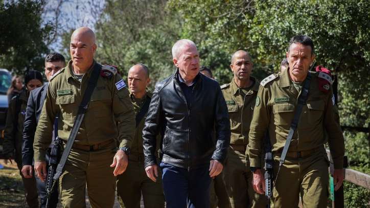 Minister van Defensie Yoav Galant en stafchef Herzi Halevi van de IDF tijdens een rondleiding bij de grens met Libanon in het noorden van Israël, op 16 maart 2023. Foto: David Cohen/Flash90
