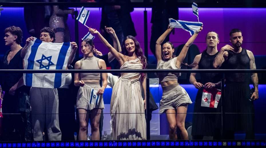 Eden Golan en het Israëlische team op het ESC in Malmö, Zweden. Foto: EPA-EFE/Ida Marie Odgaard