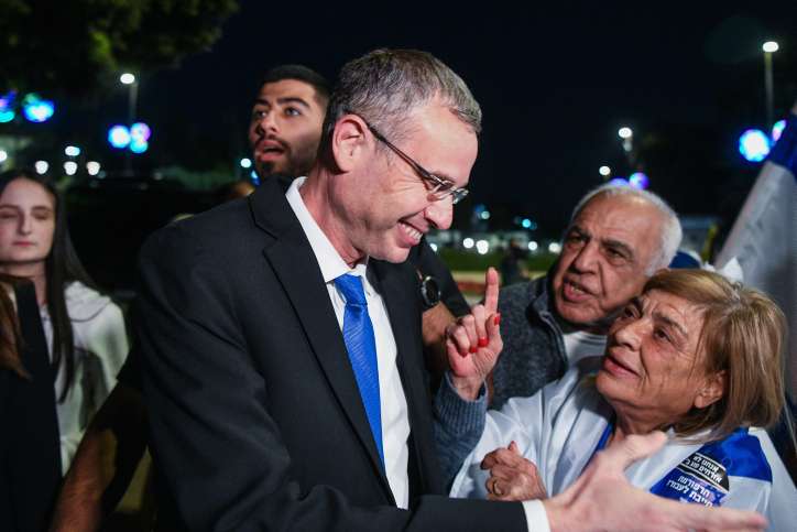 Minister van Justitie Yariv Levin wordt door burgers in Jeruzalem aangemoedigd om aan te dringen op hervormingen. Foto Arie Leib Abrams/Flash90