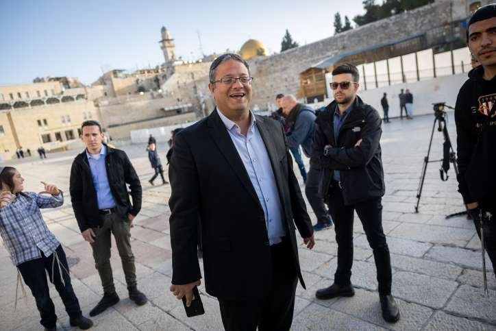 Itamar Ben-Gvir na een bezoek aan de Tempelberg bij de Klaagmuur in de Oude Stad van Jeruzalem. Foto: Yonatan Sindel/Flash90