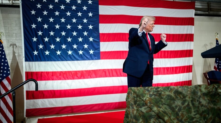 De Amerikaanse president Donald Trump houdt op 13 februari 2026 een toespraak voor militaire families in Fort Bragg, North Carolina. Foto: Daniel Torok/Witte Huis.