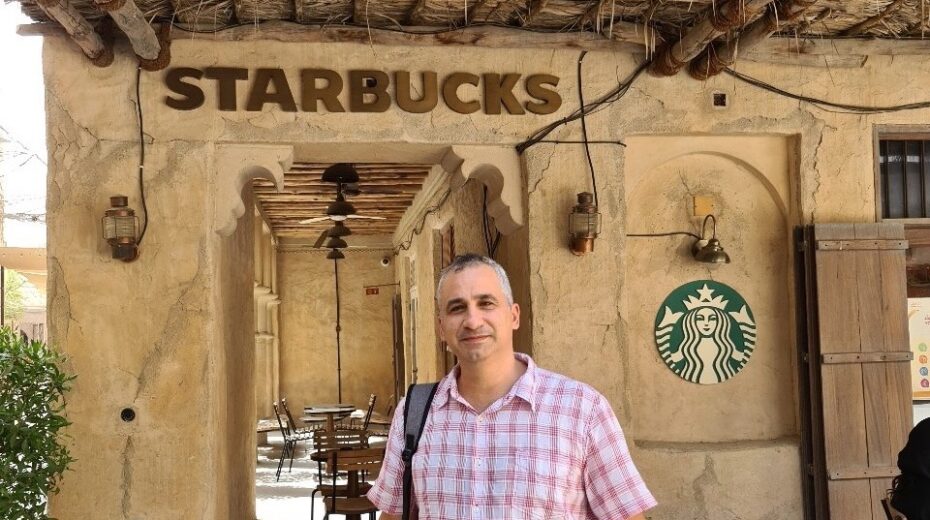 De correspondent van Israel Today, Edy Cohen, in een Starbucks in Dubai. Foto: Edy Cohen