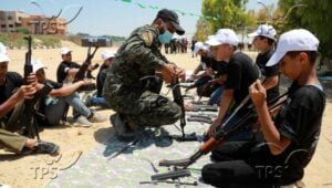 Jongeren, sommigen gewapend met geweren, ondergaan militaire training met inbegrip van stedelijke oorlogvoering tactieken en man-tot-man gevechten.