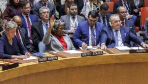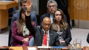 “Hamas – een terroristische organisatie – heeft momenteel de macht en de invloed in de Gazastrook”, zegt de Amerikaanse gezant Robert Wood, die uitlegt waarom de Palestijnen niet voldoen aan de definitie van een staat.
